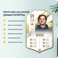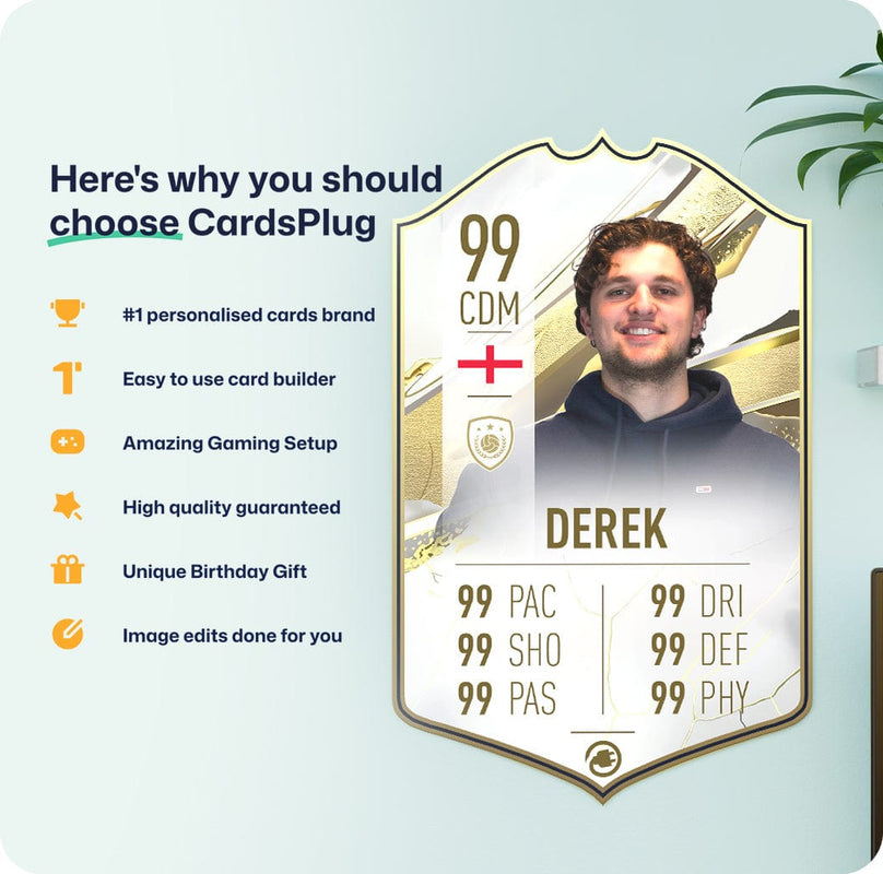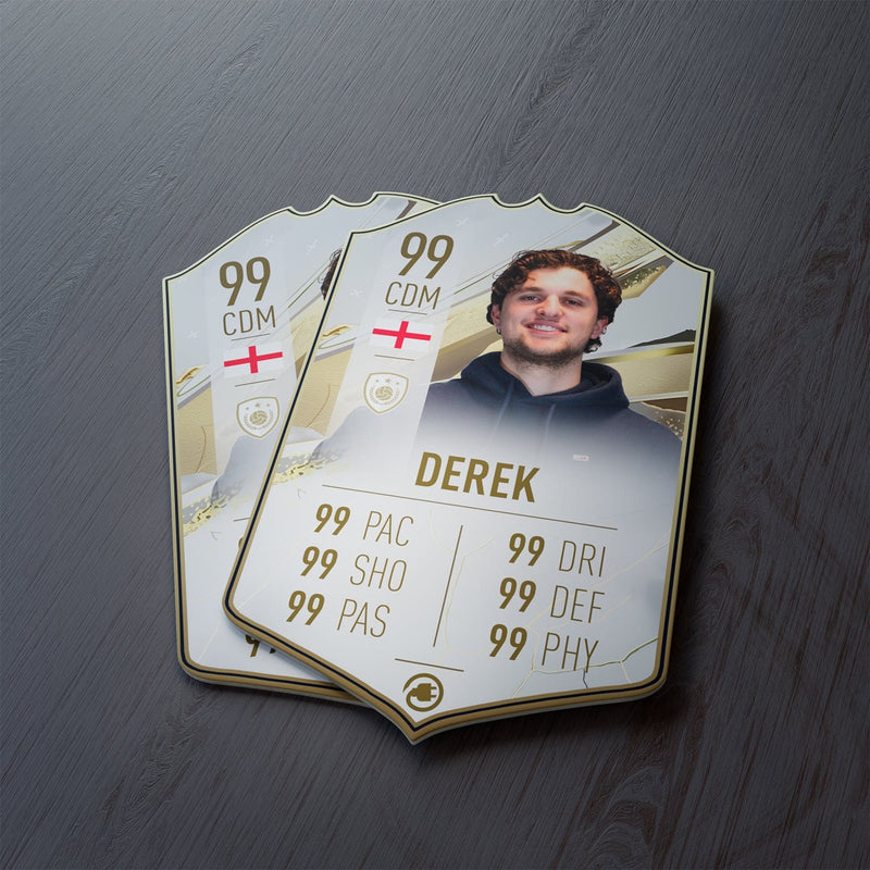 CardsPlug is home to the world’s favourite personalised football cards. Our easy football card builder lets you make a real life football card with your own name, photo, and skill ratings. With 100+ designs to choose from and some inspired by EA SPORTS FC 26 cards seen in EA FC 26, EA FC 25 and FC 24 as well as FIFA cards seen in games like FIFA 23 and FIFA 22.