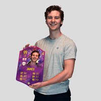 When it comes to personalising your card, the basic steps are to upload a photo and add a name to your card. Then you’ll add details like your player’s position and skill ratings out of 99 for each football skill shown on the card. Our online card builder makes this really easy. And if you aren’t a football card expert, don’t worry!