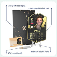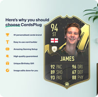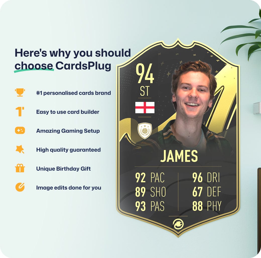 CardsPlug is home to the world’s favourite personalised football cards. Our easy football card builder lets you make a real life football card with your own name, photo, and skill ratings. With 100+ designs to choose from and some inspired by EA SPORTS FC 26 cards seen in EA FC 26, EA FC 25 and FC 24 as well as FIFA cards seen in games like FIFA 23 and FIFA 22.