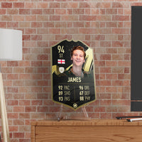 Our football card builder lets you choose between two different card materials. Our Standard cards are made of a ultra-strong variety of Foamex (not cardboard or foam!). This material has a lovely gloss finish and is also super durable. Our world-exclusive Metal football cards have a matte finish and are slightly heavier. Both look amazing and will last forever.