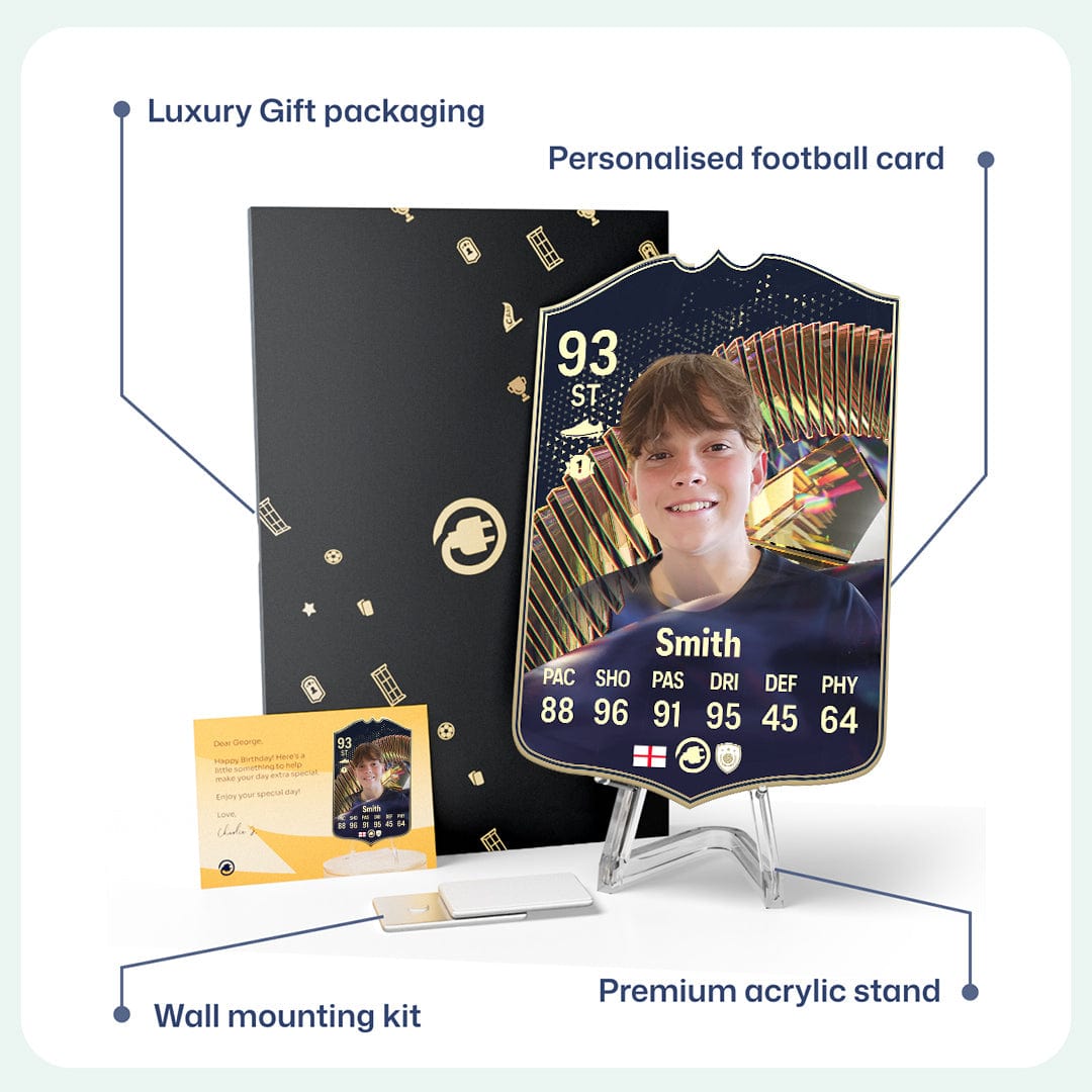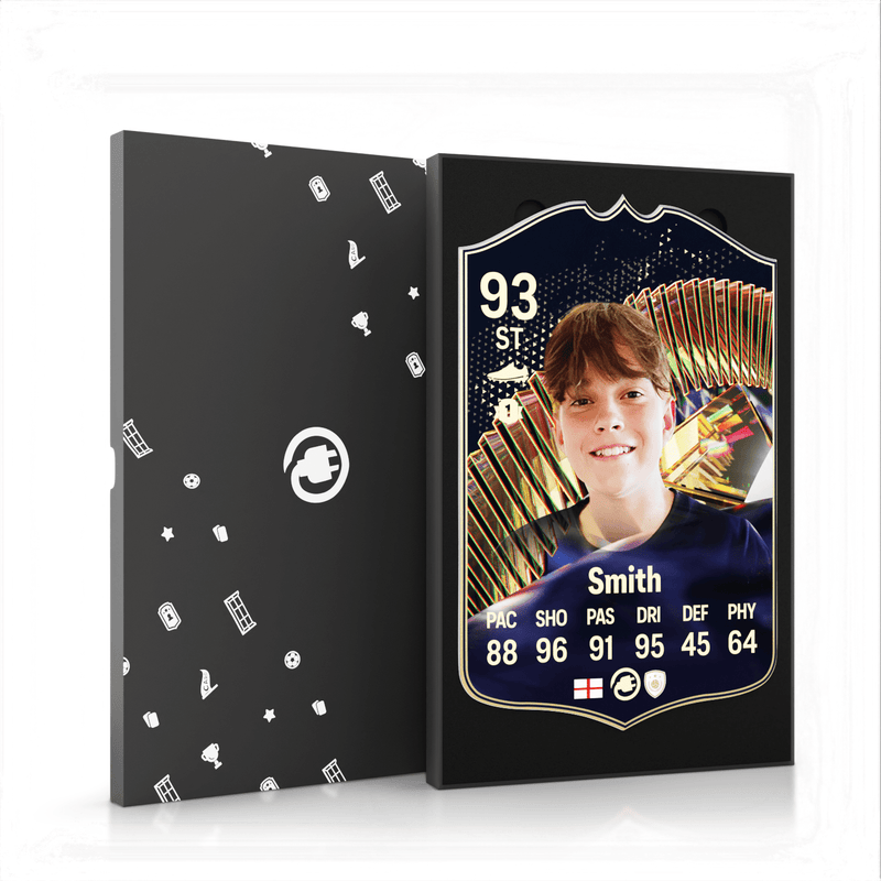 CardsPlug is home to the world’s favourite personalised football cards. Our easy football card builder lets you make a real life football card with your own name, photo, and skill ratings. With 100+ designs to choose from and some inspired by EA SPORTS FC 26 cards seen in EA FC 26, EA FC 25 and FC 24 as well as FIFA cards seen in games like FIFA 23 and FIFA 22.