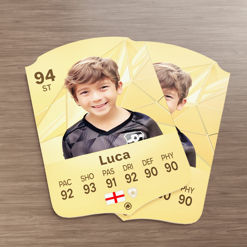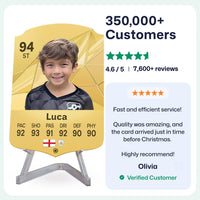 Yes! Our football card designers will remove the background from the photo you upload so it looks just like the football cards you might’ve seen games like EA FC 25, EA FC 24 or FIFA. We’ll also position the photo perfectly on the football card so it looks great. If there are any problems with the quality of your photo, we’ll reach out and let you know. Plus, our website's AI will remove the background on the image for visual purposes before purchase so you can see it without a background on the card.