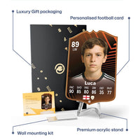 Yes! Our football card designers will remove the background from the photo you upload so it looks just like the football cards you might’ve seen games like EA FC 25, EA FC 24 or FIFA. We’ll also position the photo perfectly on the football card so it looks great. If there are any problems with the quality of your photo, we’ll reach out and let you know. Plus, our website's AI will remove the background on the image for visual purposes before purchase so you can see it without a background on the card.