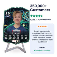 Yes! Our football card designers will remove the background from the photo you upload so it looks just like the football cards you might’ve seen games like EA FC 25, EA FC 24 or FIFA. We’ll also position the photo perfectly on the football card so it looks great. If there are any problems with the quality of your photo, we’ll reach out and let you know. Plus, our website's AI will remove the background on the image for visual purposes before purchase so you can see it without a background on the card.