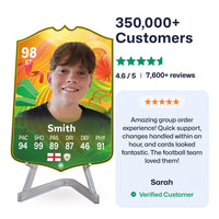 Yes! Our football card designers will remove the background from the photo you upload so it looks just like the football cards you might’ve seen games like EA FC 25, EA FC 24 or FIFA. We’ll also position the photo perfectly on the football card so it looks great. If there are any problems with the quality of your photo, we’ll reach out and let you know. Plus, our website's AI will remove the background on the image for visual purposes before purchase so you can see it without a background on the card.