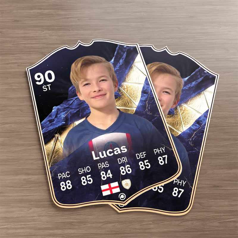 CardsPlug is home to the world’s favourite personalised football cards. Our easy football card builder lets you make a real life football card with your own name, photo, and skill ratings. With 100+ designs to choose from and some inspired by EA SPORTS FC 26 cards seen in EA FC 26, EA FC 25 and FC 24 as well as FIFA cards seen in games like FIFA 23 and FIFA 22.