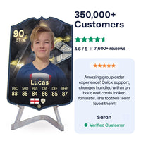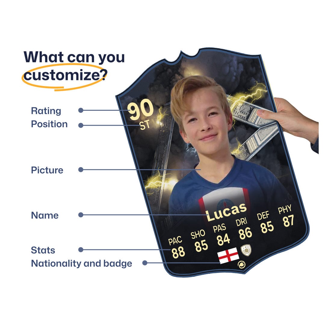Yes! Our football card designers will remove the background from the photo you upload so it looks just like the football cards you might’ve seen games like EA FC 25, EA FC 24 or FIFA. We’ll also position the photo perfectly on the football card so it looks great. If there are any problems with the quality of your photo, we’ll reach out and let you know. Plus, our website's AI will remove the background on the image for visual purposes before purchase so you can see it without a background on the card.