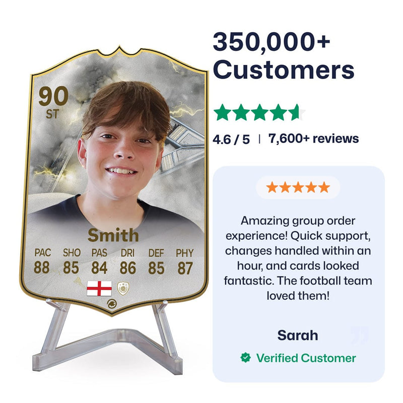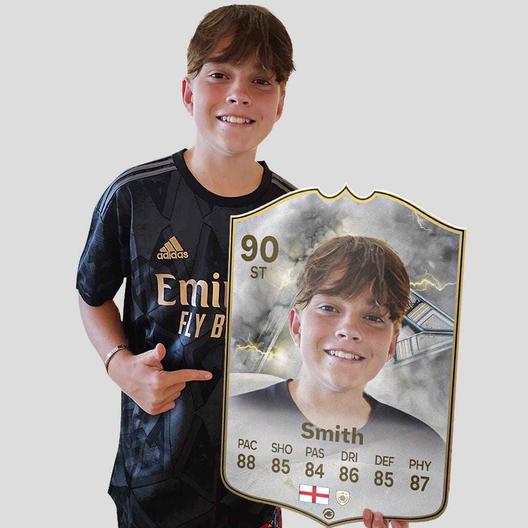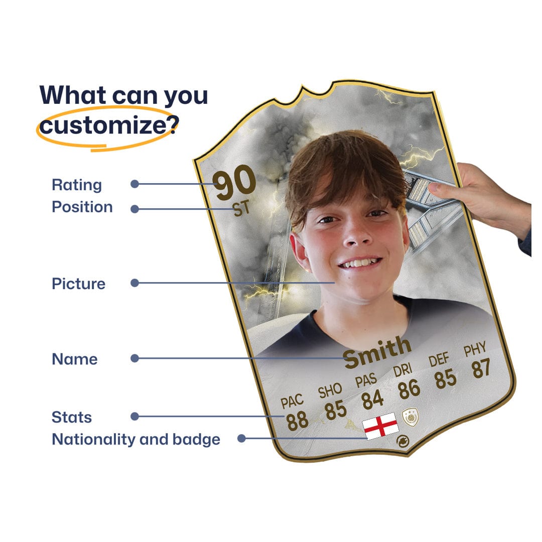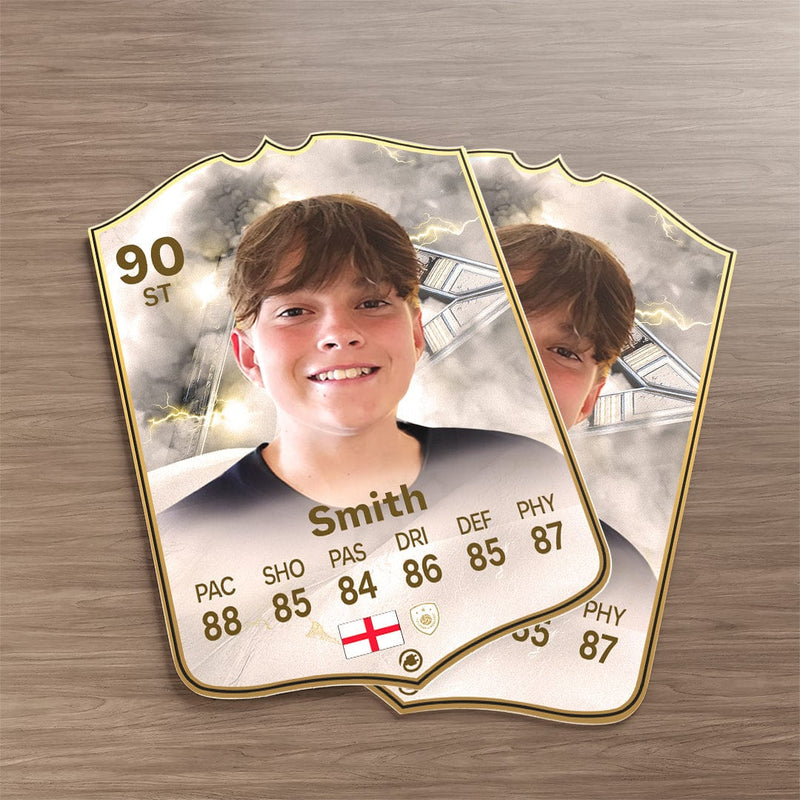 Yes! Our football card designers will remove the background from the photo you upload so it looks just like the football cards you might’ve seen games like EA FC 25, EA FC 24 or FIFA. We’ll also position the photo perfectly on the football card so it looks great. If there are any problems with the quality of your photo, we’ll reach out and let you know. Plus, our website's AI will remove the background on the image for visual purposes before purchase so you can see it without a background on the card.