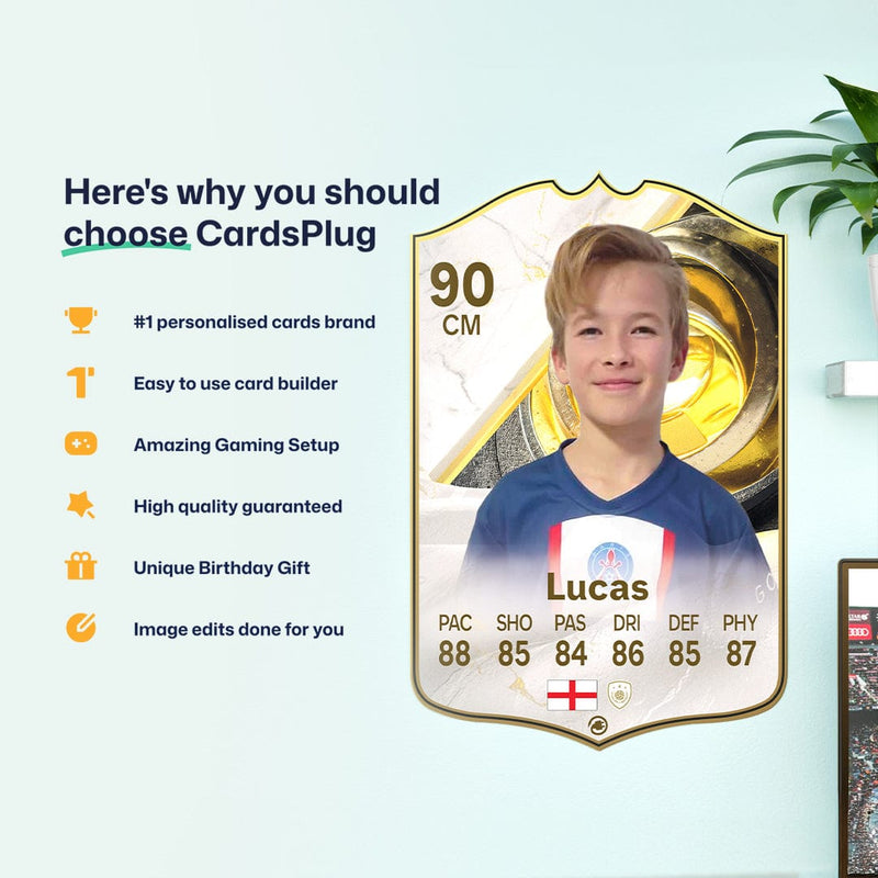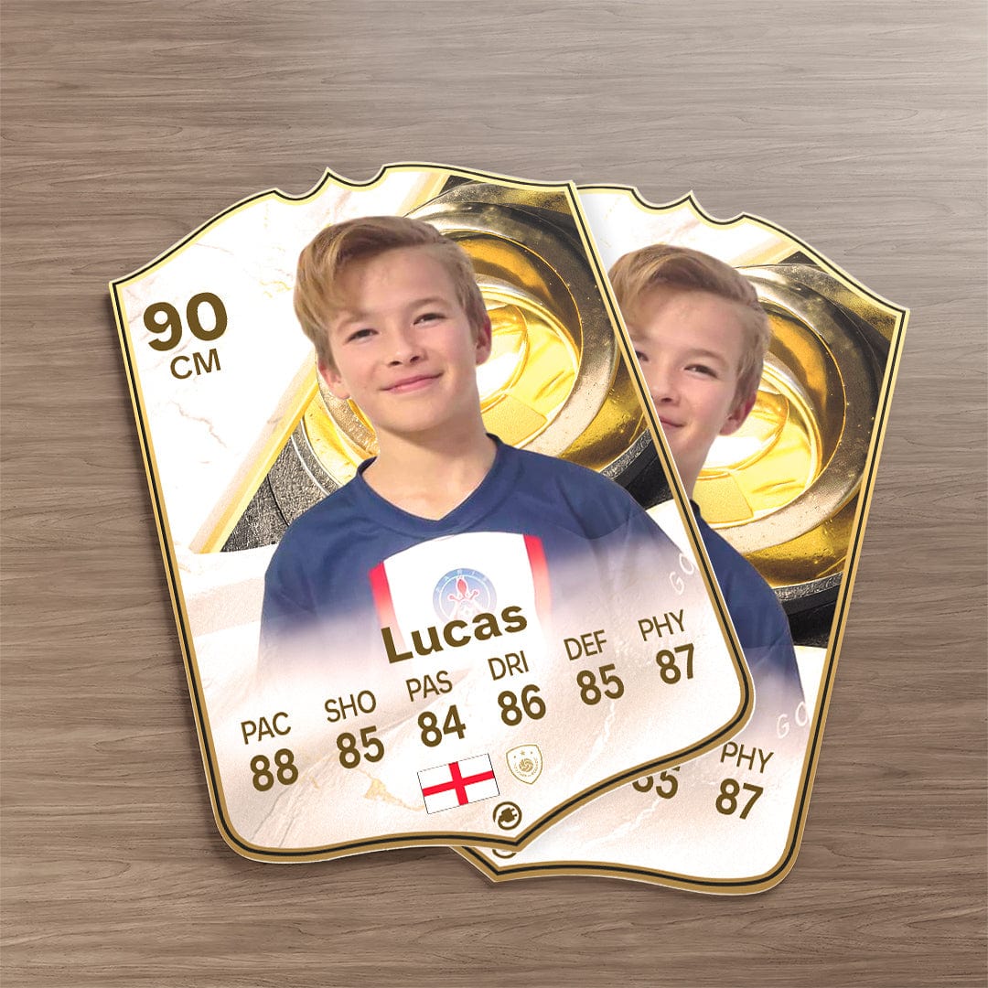 CardsPlug is home to the world’s favourite personalised football cards. Our easy football card builder lets you make a real life football card with your own name, photo, and skill ratings. With 100+ designs to choose from and some inspired by EA SPORTS FC 26 cards seen in EA FC 26, EA FC 25 and FC 24 as well as FIFA cards seen in games like FIFA 23 and FIFA 22.