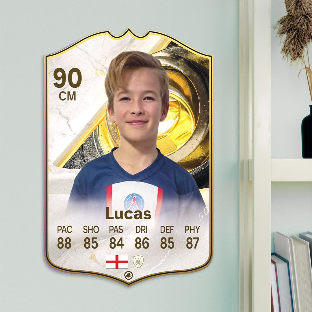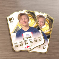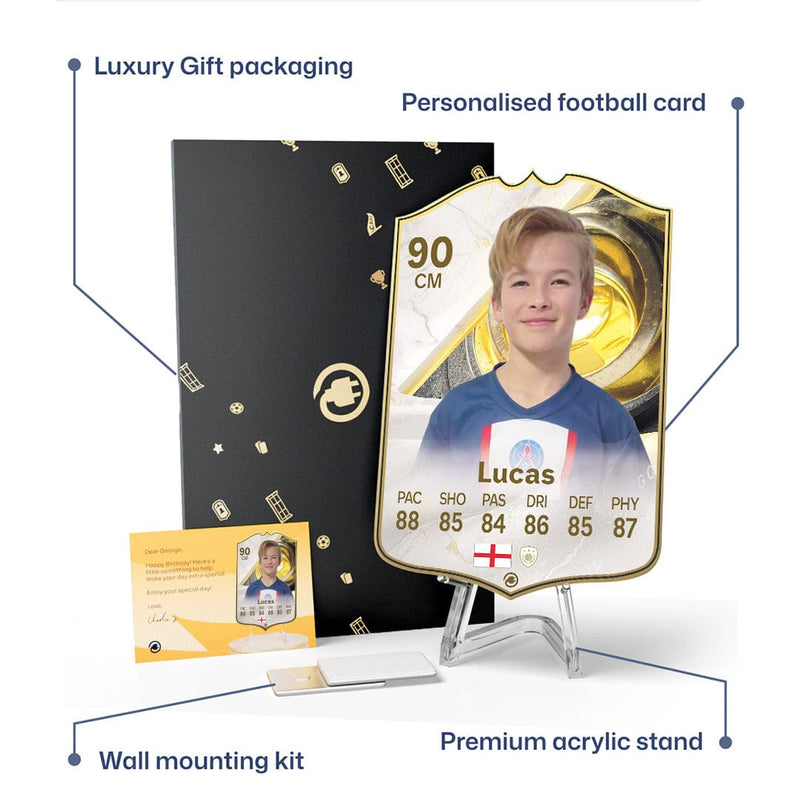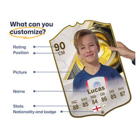 When it comes to personalising your card, the basic steps are to upload a photo and add a name to your card. Then you’ll add details like your player’s position and skill ratings out of 99 for each football skill shown on the card. Our online card builder makes this really easy. And if you aren’t a football card expert, don’t worry!