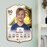 Our football card builder lets you choose between two different card materials. Our Standard cards are made of a ultra-strong variety of Foamex (not cardboard or foam!). This material has a lovely gloss finish and is also super durable. Our world-exclusive Metal football cards have a matte finish and are slightly heavier. Both look amazing and will last forever.