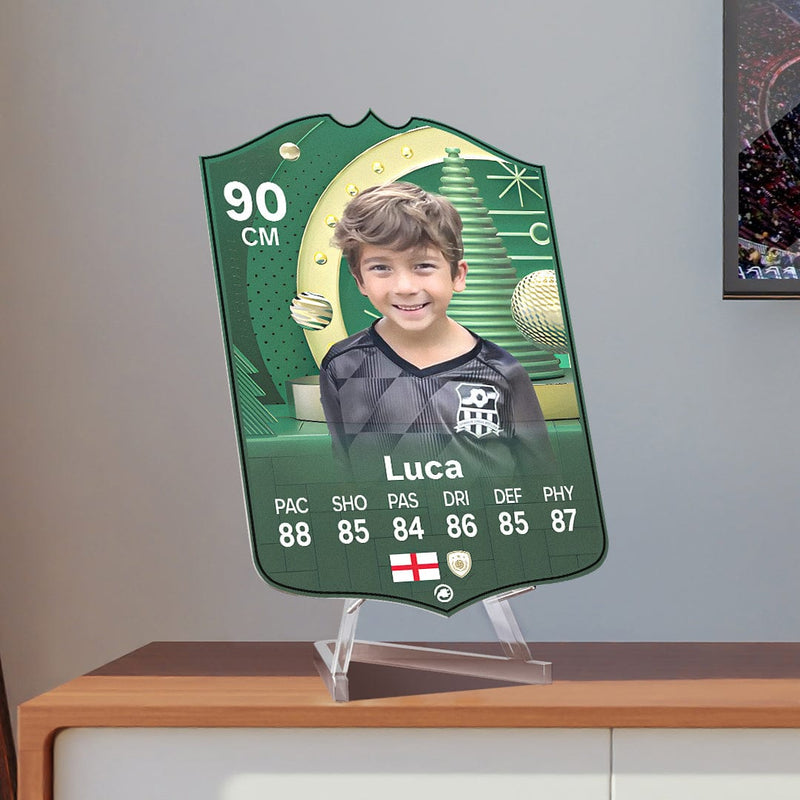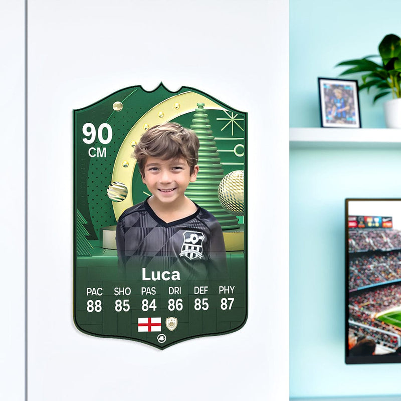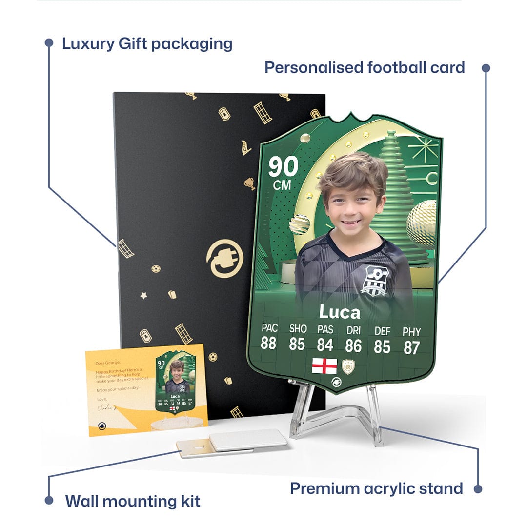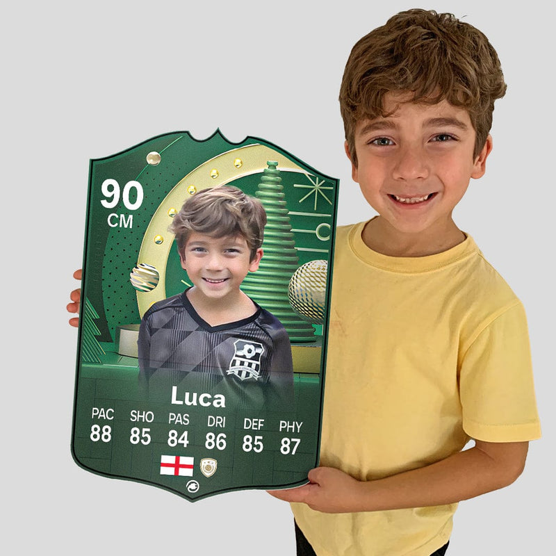 When it comes to personalising your card, the basic steps are to upload a photo and add a name to your card. Then you’ll add details like your player’s position and skill ratings out of 99 for each football skill shown on the card. Our online card builder makes this really easy. And if you aren’t a football card expert, don’t worry!