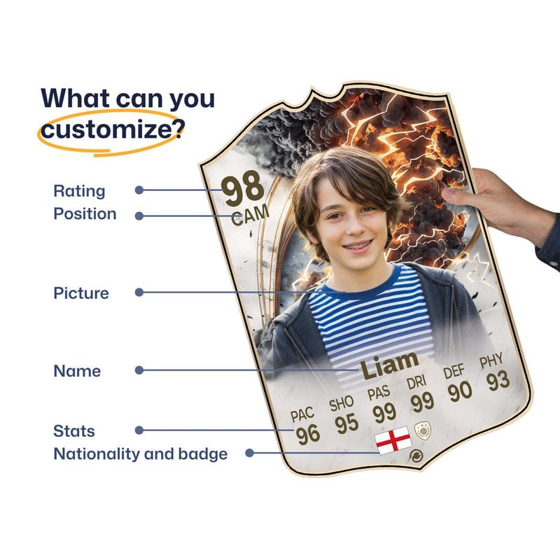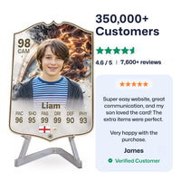 Yes! Our football card designers will remove the background from the photo you upload so it looks just like the football cards you might’ve seen games like EA FC 25, EA FC 24 or FIFA. We’ll also position the photo perfectly on the football card so it looks great. If there are any problems with the quality of your photo, we’ll reach out and let you know. Plus, our website's AI will remove the background on the image for visual purposes before purchase so you can see it without a background on the card.