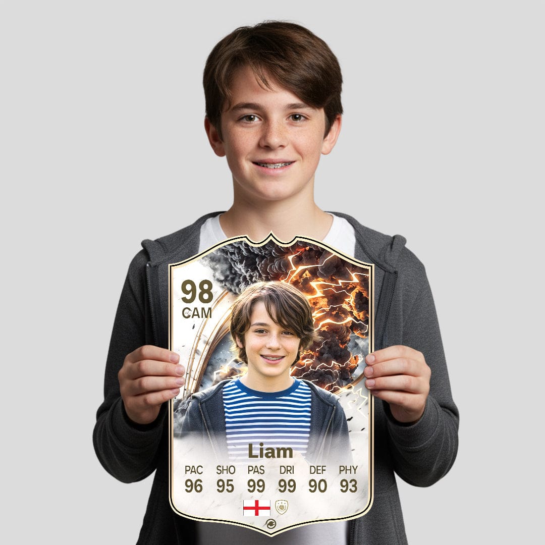 CardsPlug is home to the world’s favourite personalised football cards. Our easy football card builder lets you make a real life football card with your own name, photo, and skill ratings. With 100+ designs to choose from and some inspired by EA SPORTS FC 26 cards seen in EA FC 26, EA FC 25 and FC 24 as well as FIFA cards seen in games like FIFA 23 and FIFA 22.