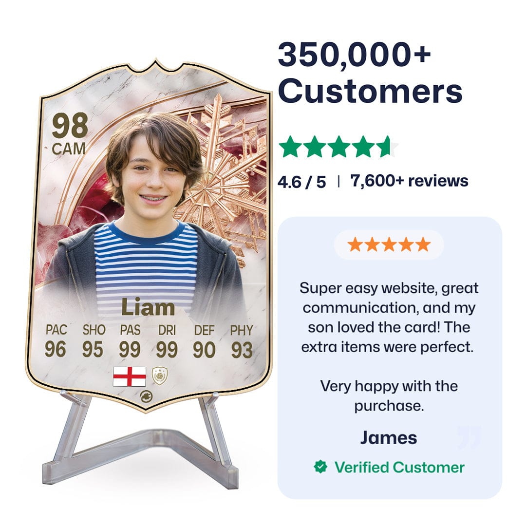 Once you’ve personalised your card, our design experts will edit your photo, design your card, and bring it to life in stunning quality. You’ll get a full preview before we print your card and every card’s quality is backed by our Gold Standard Guarantee. So far, over 350,000+ football fans agree: A CardsPlug football card is the ultimate football gift!