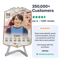 Yes! Our football card designers will remove the background from the photo you upload so it looks just like the football cards you might’ve seen games like EA FC 25, EA FC 24 or FIFA. We’ll also position the photo perfectly on the football card so it looks great. If there are any problems with the quality of your photo, we’ll reach out and let you know. Plus, our website's AI will remove the background on the image for visual purposes before purchase so you can see it without a background on the card.